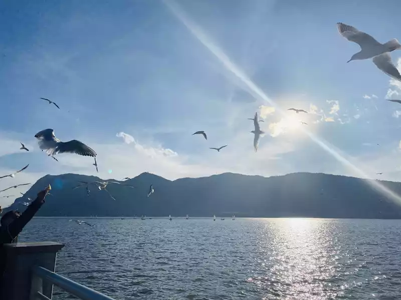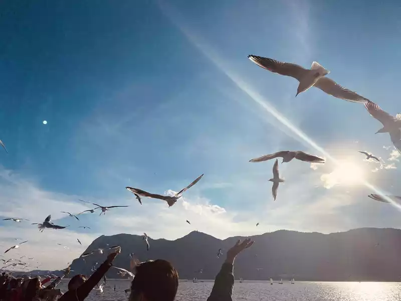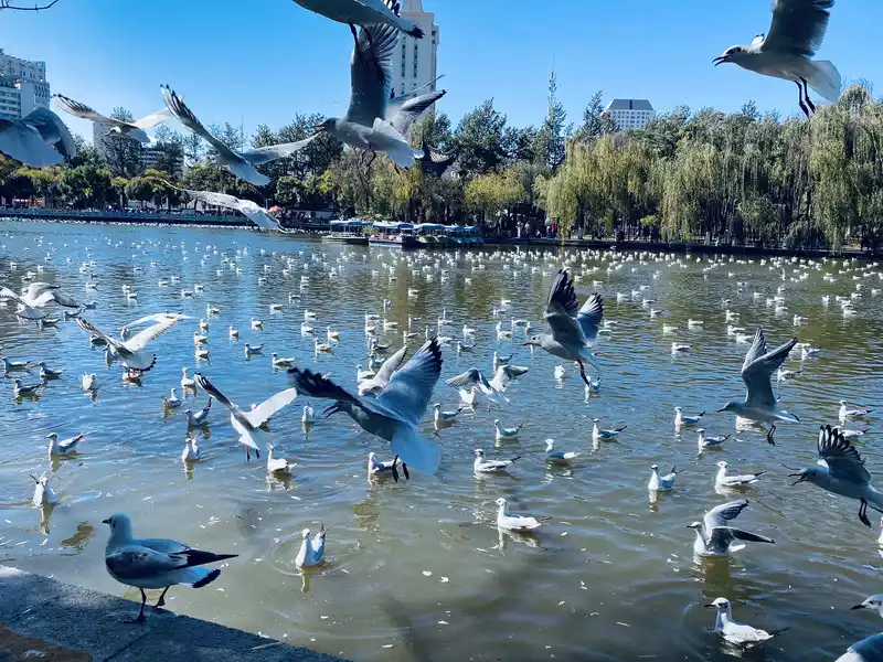 Keep walking and you will reach Cuihu Park, where you can continue feeding the seagulls. In fact, the seagulls seem to prefer their food to bread. In Cuihu Park, I also saw squirrels which I hadn't seen for a long time. Kunming's ecology is very good.