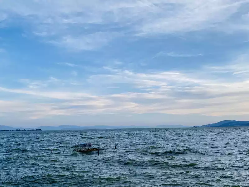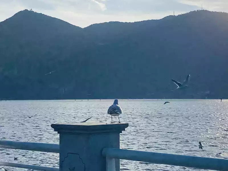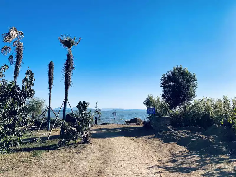 As we walked, we arrived at Dianchi Lake. The wind was very strong and there were not many people, so we just walked around. Next to it is the ethnic village. I prefer the natural scenery and did not choose to go into the ethnic village.