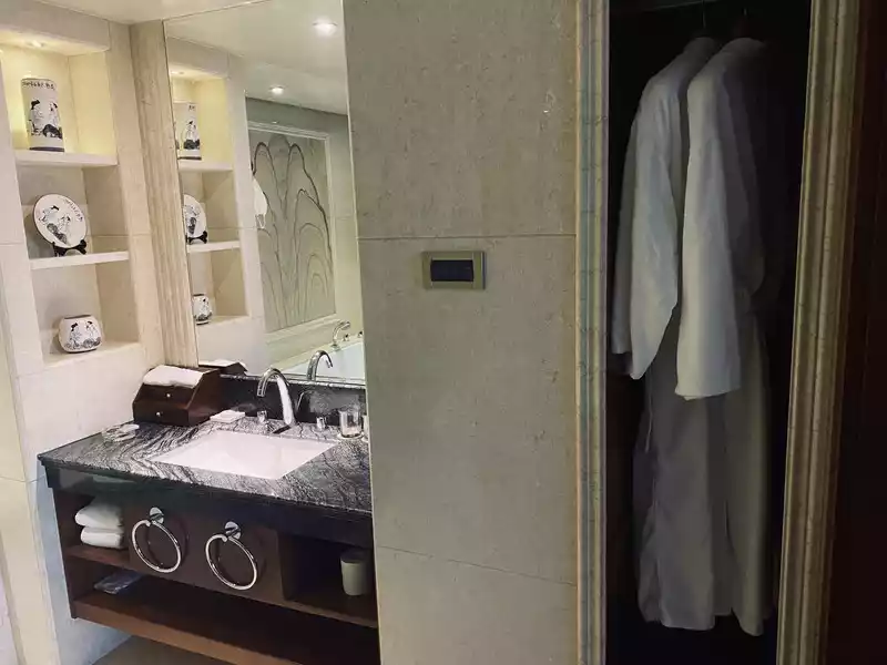Zhongwei Tianheng Hotel, the location is so good, take Metro Line 6 from the airport, Tangzixiang Station, get off the subway and walk a few minutes to arrive, an old five-star hotel with magnificent decoration. Because the door was not cleaned properly, after waiting for more than 10 minutes, the staff apologized and upgraded me to a suite. The room is too big, isn't it? Don't be too happy living alone.