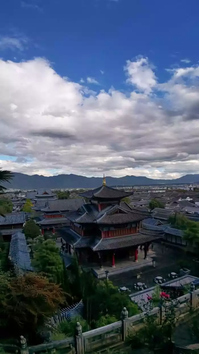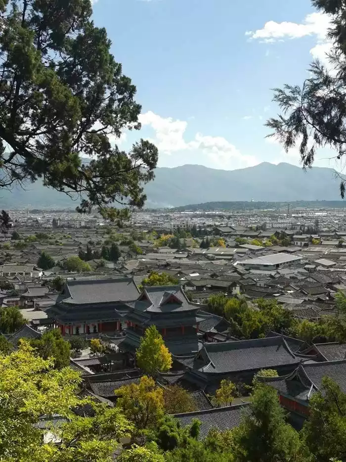 Walking to Lion Rock, you can clearly see the appearance of the ancient city of Lijiang. For example, you can see the whole picture of the Wood Mansion.