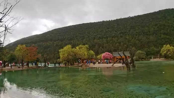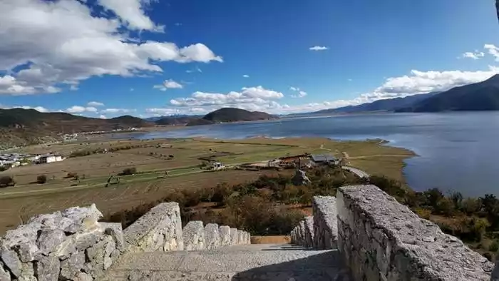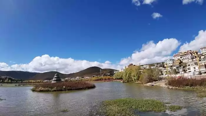 Because he was not a Buddhist believer, he stayed at Songzanlin Temple for a short time, but stayed by the lake for a long time. I said to my family: They go to the temple, and I will wait by the lake.