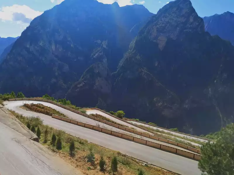 hairpin bend road, which is 35 kilometers up the mountain from Shuizhuang and rises 750 meters above sea level, was built by a villager named "Snading Zhong" in Bala Village, which took ten years to build.