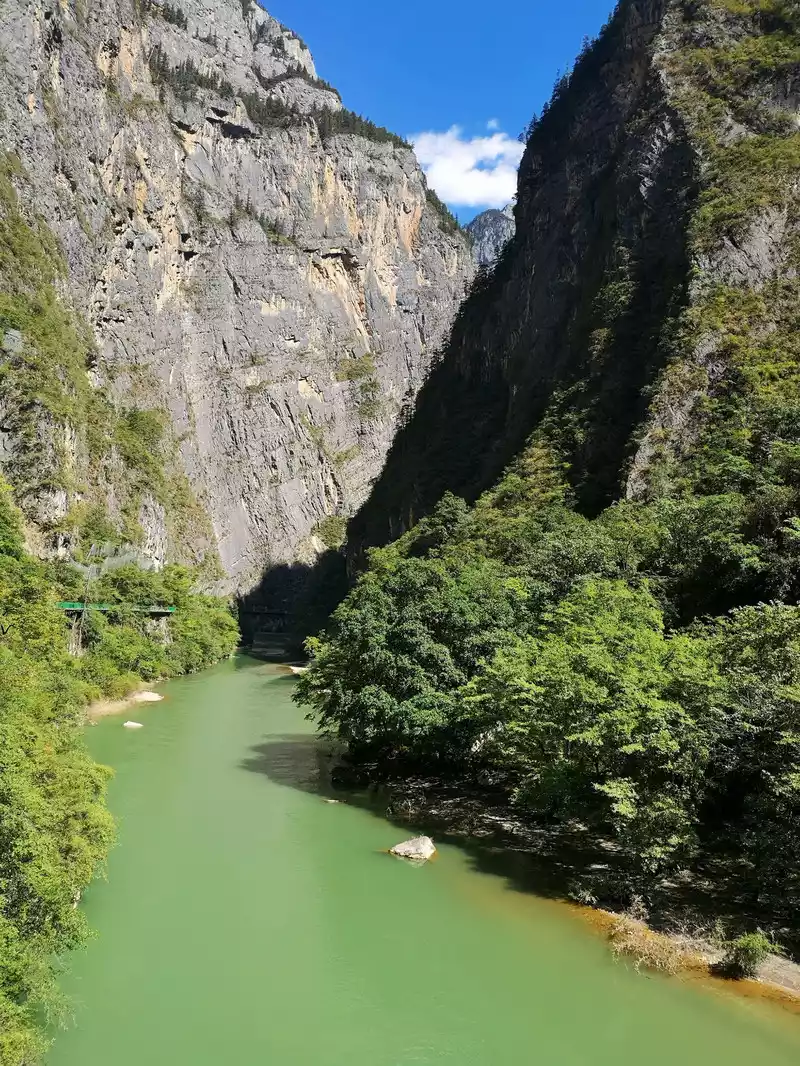 Balagzong Scenic Area: Balagzong Shangri-La Grand Canyon is located in Nixi Township, Shangri-La County, Diqing Tibetan Autonomous Prefecture, Yunnan Province, in the central hinterland of the Hongshan area, a world natural heritage site with three rivers flowing together. The canyon is deep and narrow, with a wall height of more than 1,000 meters, the widest point is about 80 meters, the narrowest part is only more than 10 meters, there are Balagzong Snow Mountain, a canyon with thousands of feet of walls, clear plateau lakes, alpine pastures and Tibetan villages, and the only village in the Balagzong Shangri-La Grand Canyon is called Bala Village.