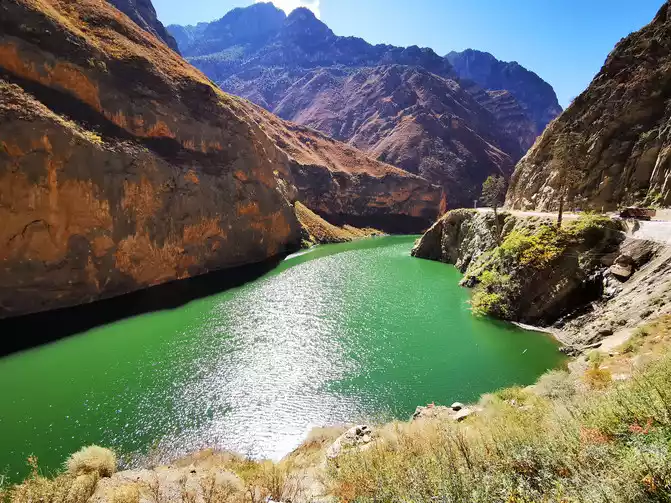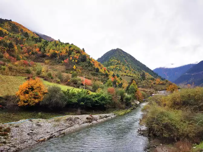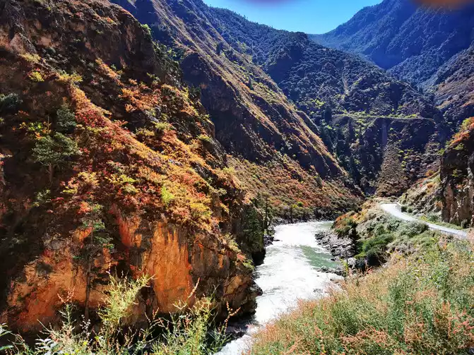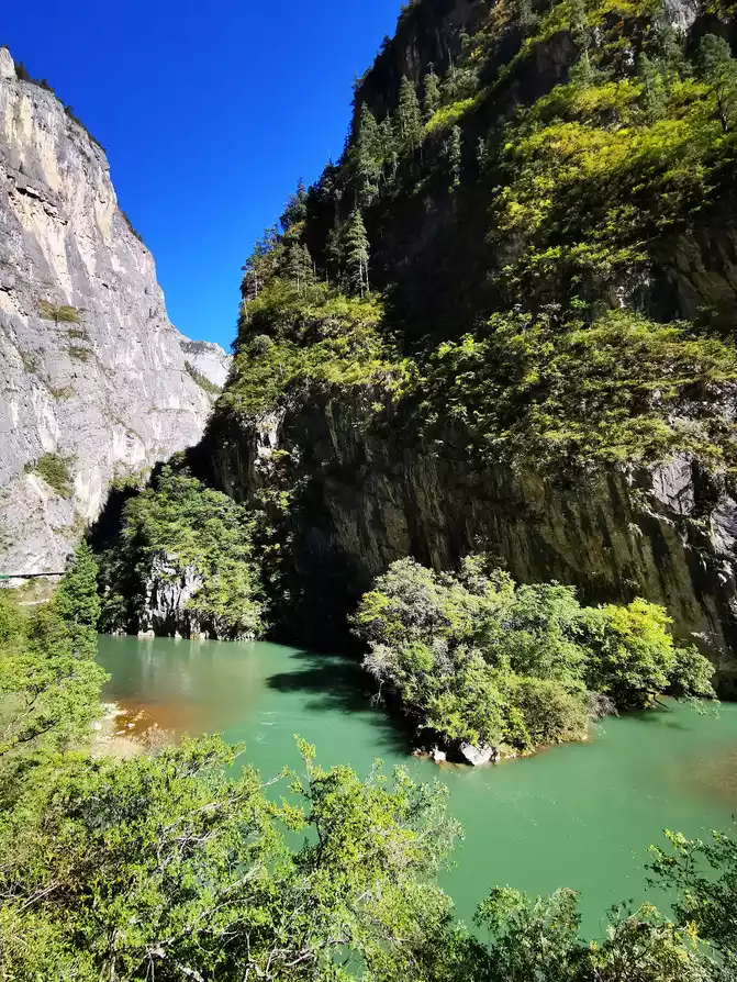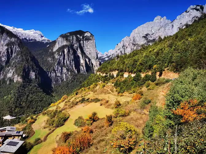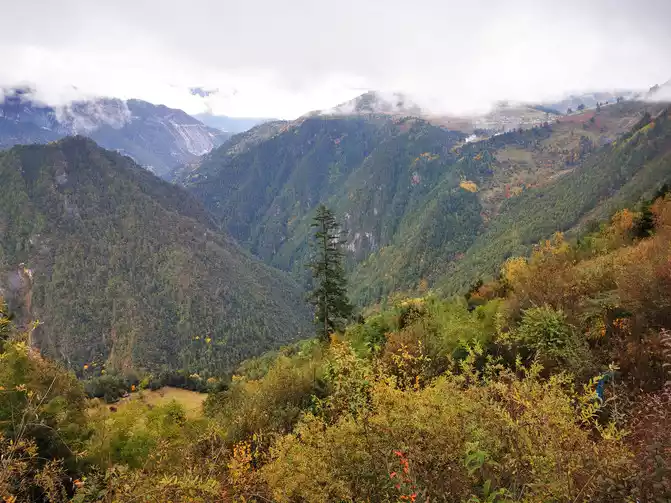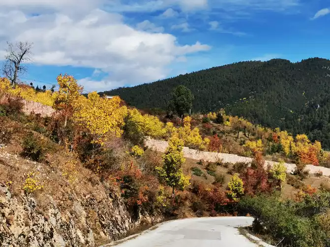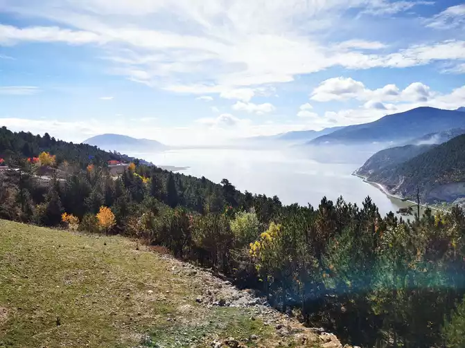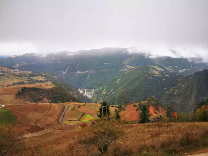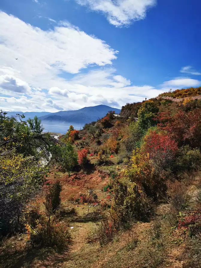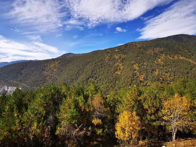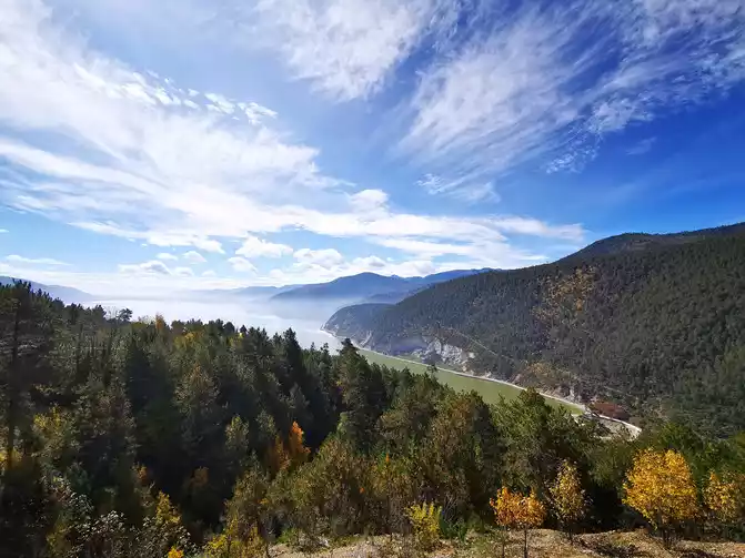 This self-driving tour lasted 51 days from October 9 to November 28, covering a distance of 8,780 kilometers. Departing from Shanghai, we traveled through Quzhou, Zhejiang; Zhuzhou, Jiangxi; Zhijiang, Hunan; Maotai Town and Chishui, Guizhou; Luzhou, Zigong, Chengdu, Dujiangyan, Wenchuan, Lixian, Ma'erkang, Jinchuan, Danba, Xinduqiao, Litang, and Daocheng, Sichuan; Shangri-La, Lijiang, Jianchuan, Shaxi, Dali, Weishan, Chuxiong, Kunming, and Dongchuan, Yunnan; Panzhou, Qianxinan, Ziyun, Duyun, and Qiandongnan, Guizhou; Loudi, Hunan; Fuzhou, Jiangxi; and Quzhou, Zhejiang, before returning to Shanghai. Day 21, October 29th: From Shangri-La Town, Daocheng County, Sichuan to the Balagezong Scenic Area, Shangri-La City, Yunnan: 261 kilometers, standard time 6:30, actual time 9:15-16:30. After visiting Daocheng Yading, we had originally planned to continue south to Liangshan Prefecture and Lugu Lake. However, the navigation indicated road construction south, so the route was detoured via Xiangcheng to Shangri-La, Yunnan, and then to Xichang. I wasn't sure about the road conditions on the other direct route south, the Lu-Ya Line. A friend had just visited Balagzong and raved about it, calling it a relatively unknown scenic spot. So, I decided to go there. The road was smooth and winding, with few cars. Heading north, we took National Highway 227, then west to Xiangcheng County. Then, we turned south on Provincial Highway 217, entering Yunnan, where we took National Highway 215 and the Xijing Line. First, the plateau, then the Jinsha River, a vibrant world. The Jinsha River is truly emerald green; this is truly a journey of lush green mountains and clear waters. The altitude ranged from 2,900 to 4,600 meters, and finally 2,150 to 2,050 meters, with temperatures ranging from 0°C to 29°C.