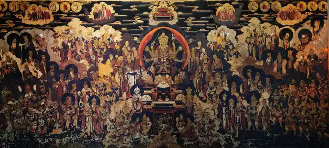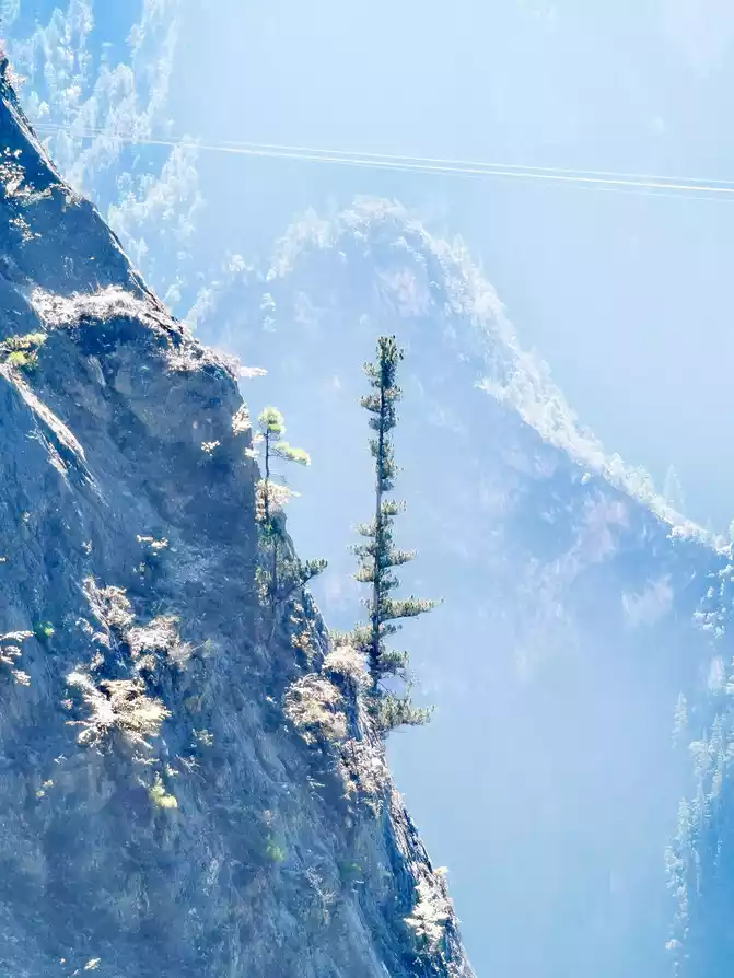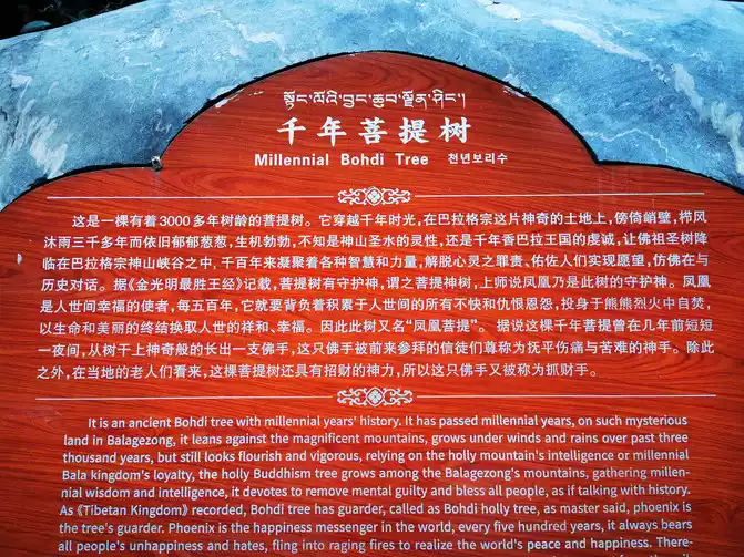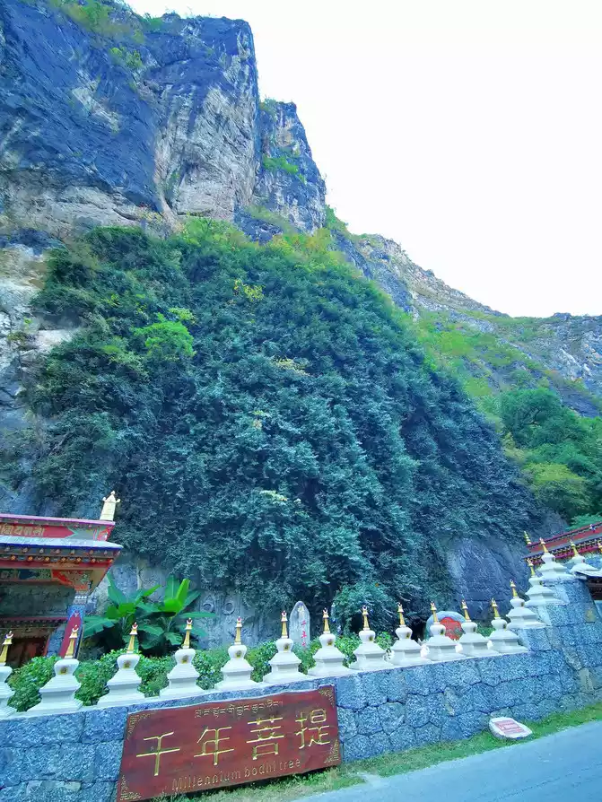 This bodhi tree is over 3,000 years old. Its roots comprise only a small portion of the tree; its entire trunk grows peacock-like along the cliff face, covering over 400 square meters.