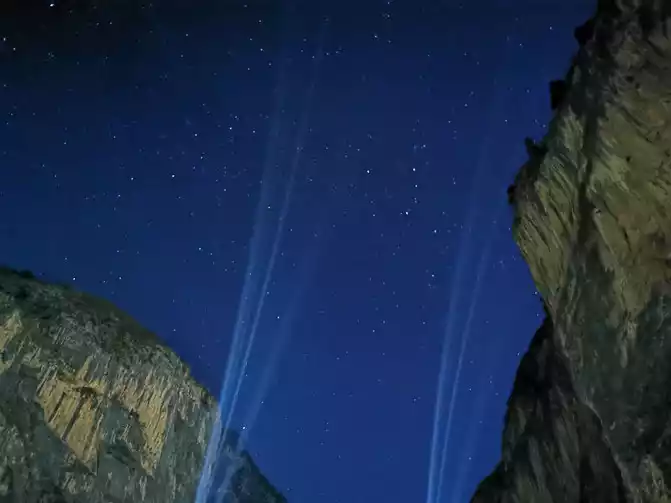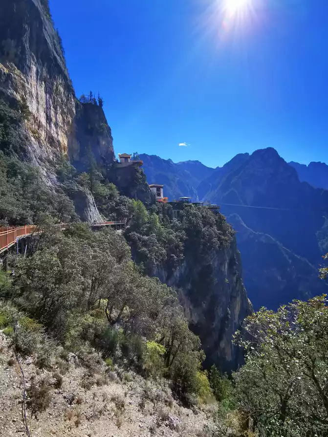 700-meter vertical drop. 1.4 km plank road, return along the original route.