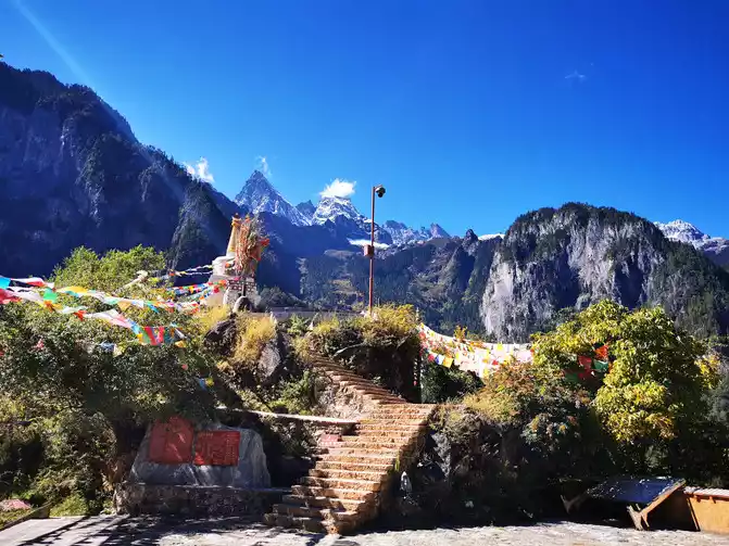 Baishui River: 7 kilometers away from the big ropeway, it is a small river washed by the melted water from the snow mountains. It is named because there are many white stones on the bottom of the river. You can go down to the Blue Moon Valley attraction.
