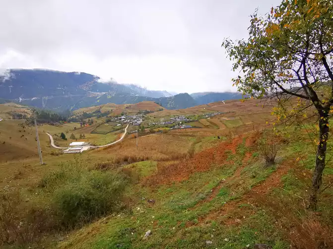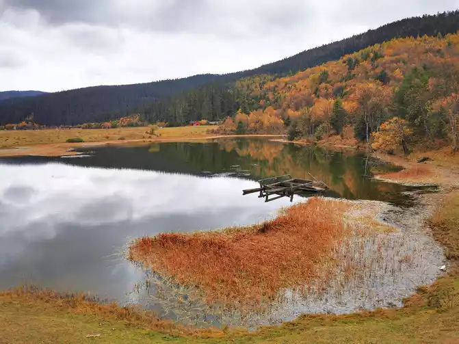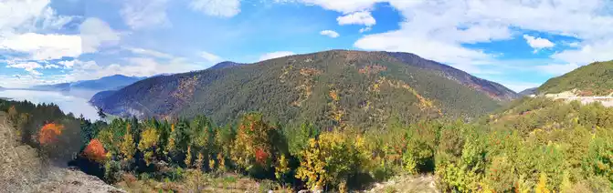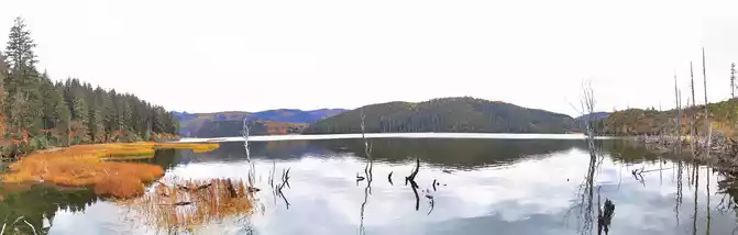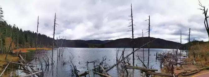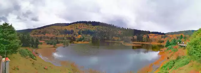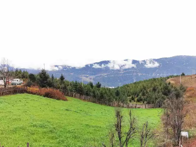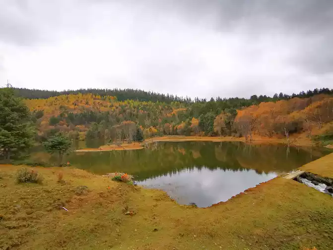 7 kilometers from the city. These are plateau lakes. The highest point is in front of the Alpine Botanical Garden gate, offering panoramic views.
