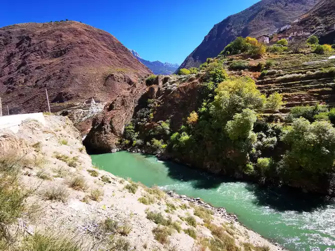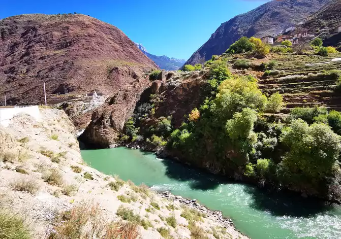 Leaving Balagzong, "Bodhisattva" saw you off in Shuizhuang Village, wishing you a safe journey! Kaizhang Water, the First Bend of the Jinsha River: