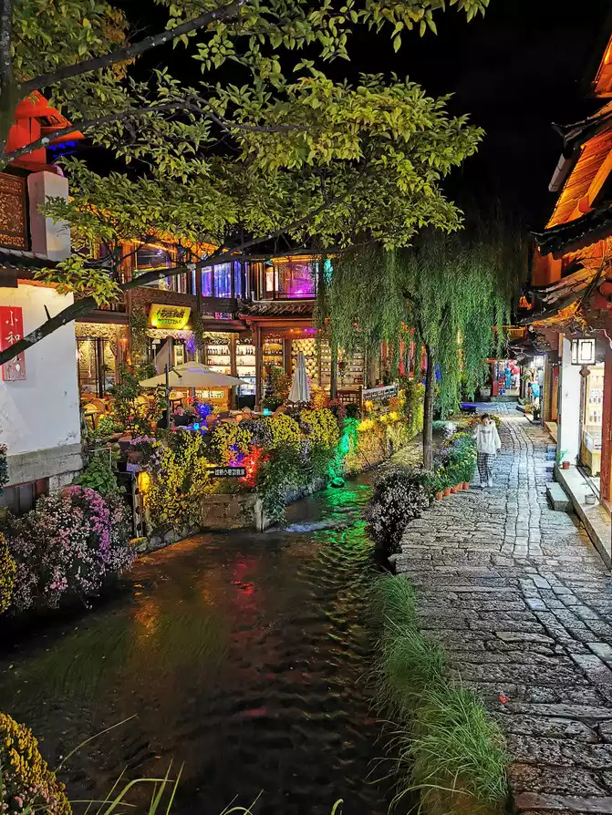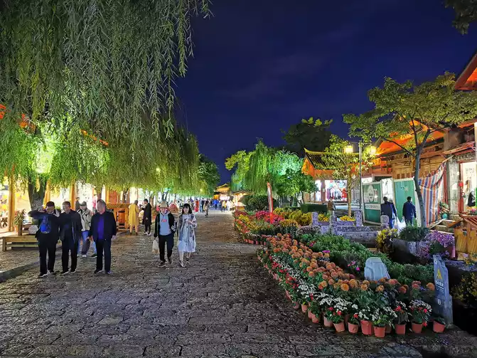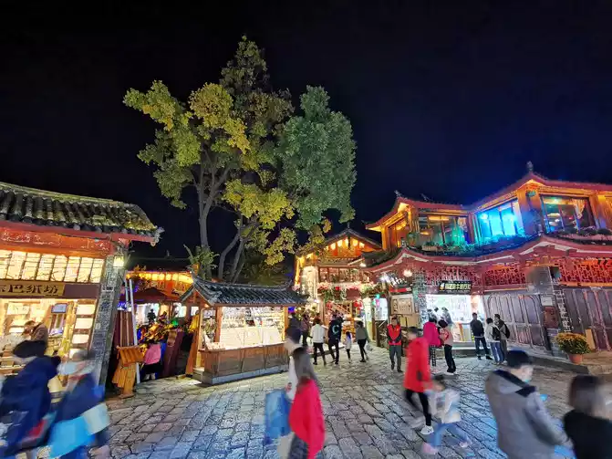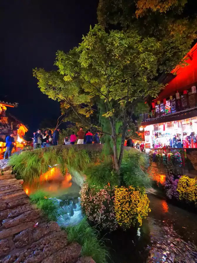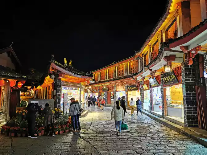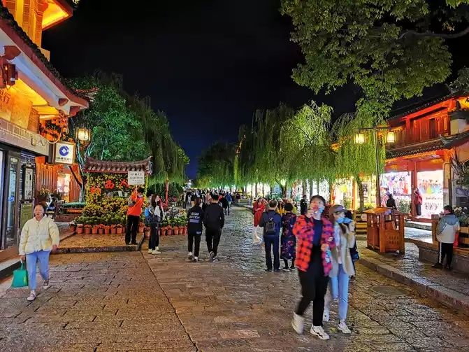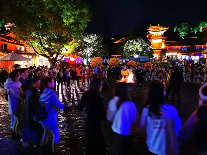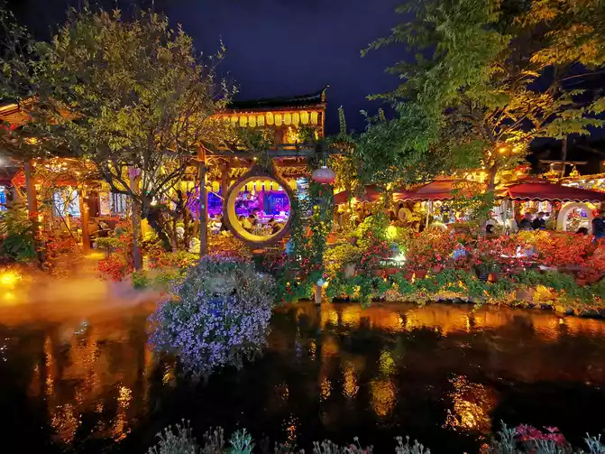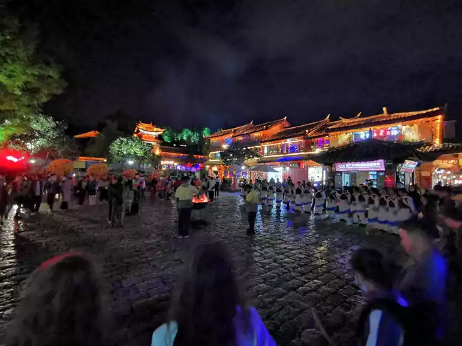 The ancient town of Lijiang is still bustling with entertainment and crowds of people.