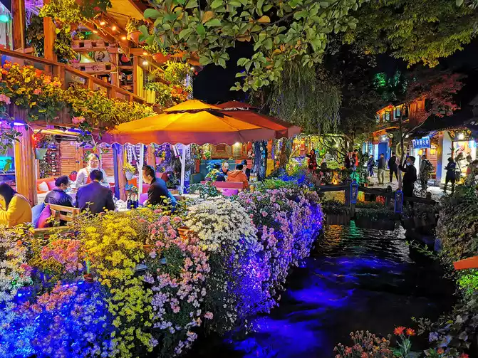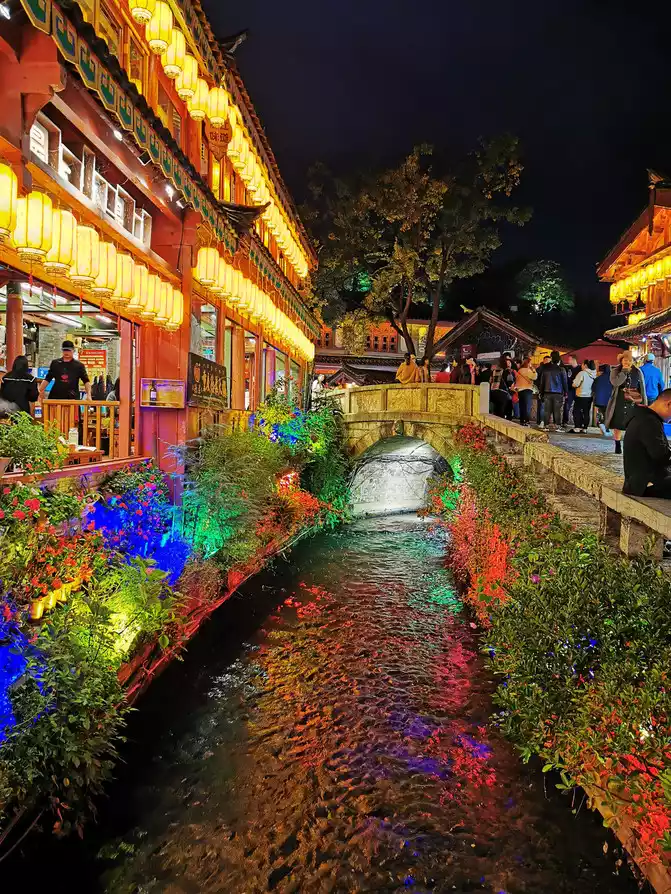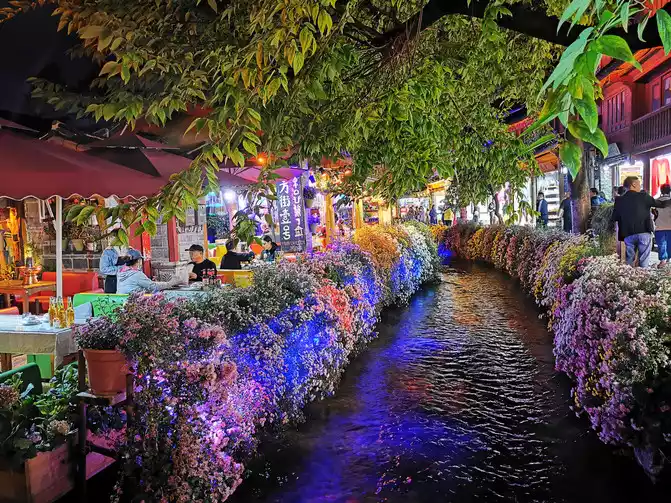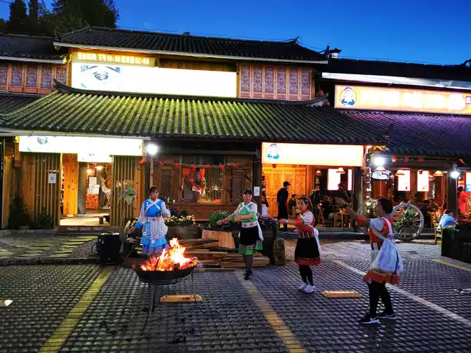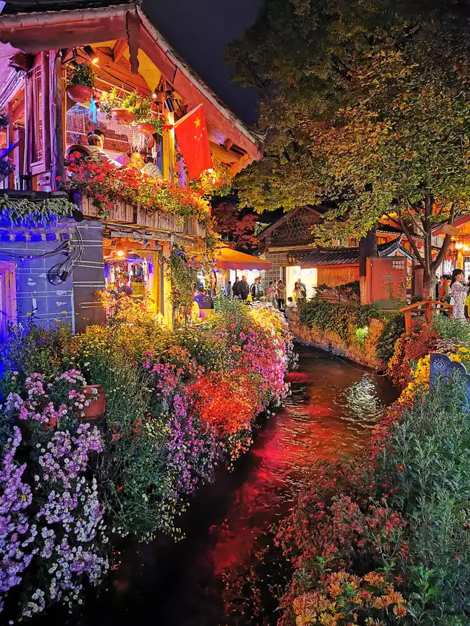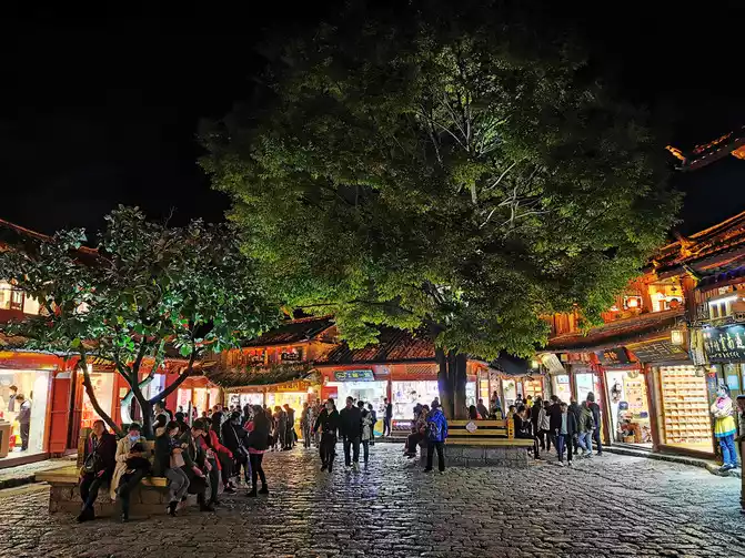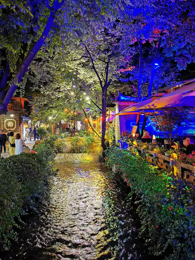 The ancient town of Lijiang is still bustling with entertainment and crowds of people.