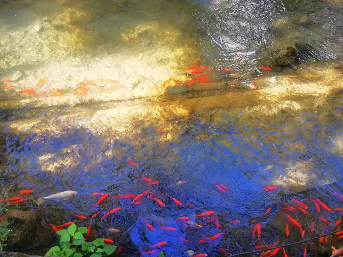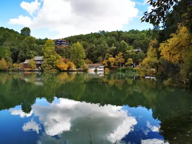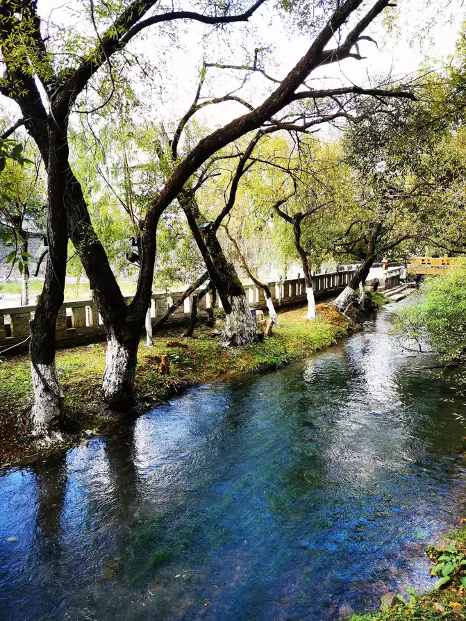 After coming out of the back door of Heilongtan Park, walk along the stream to the ancient city: