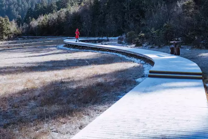 About 40 minutes drive from Shangri-La to Pudacuo, Pudacuo has three main tourist areas: Sidu Lake, Militang Ya Alpine Meadow and Bita Sea, in order to restore the ecology, the meadow and Bita Sea have been closed, and currently only the Suidu Lake is open.After entering the park, take the bus to the Zhidu Lake Scenic Area, and there are two ways to visit after getting off the bus, one is to walk 3.3 kilometers along the lakeside plank road, the other is to take a boat, of course we are on foot, Pudacuo is known as the purest place in the air, of course we have to take a few more breaths.