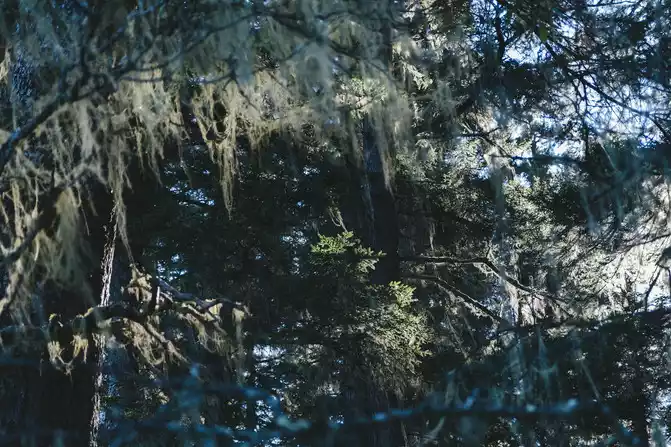 Everything in the park in winter is quiet, the lake is rippled by the wind, the grass has faded green, the flowers are hiding underground waiting to bloom in the coming year, there is a thin layer of ice on the plank road, and the little squirrels are also curled up in the nest We searched for a long time and found no trace, and the spruce firs on both sides of the plank road are full of "tree beards", which is proof of the good environment here. We walked slowly along the plank road, arrived at the shuttle bus stop in more than an hour, and took the car back to the door, just at noon.