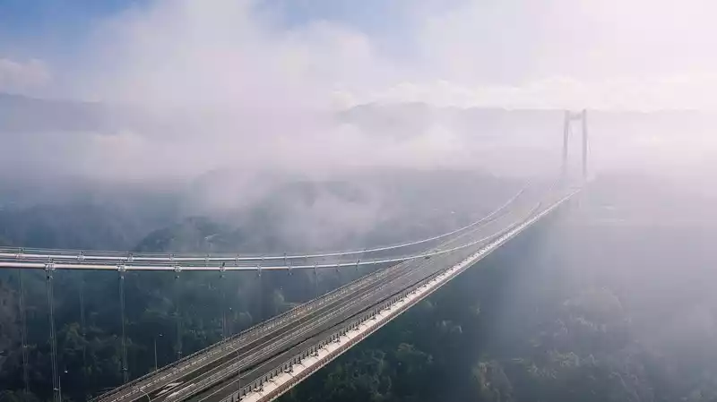 Longjiang Bridge is a control project of the Baoshan-Tengchong Expressway, spanning the Longchuan River Valley, with a total length of 2470.58 meters, is the largest expressway suspension bridge in Asia, and is also the first extra-large span steel box stiffener suspension bridge in Yunnan Province, and this "air bridge" has applied a number of domestic pioneering technologies during the construction process, obtained more than 20 patents, and was selected for the CCTV documentary "Super Project". Shuttle through the Longjiang Date Bridge, as if walking in the clouds beyond a thousand mountains.