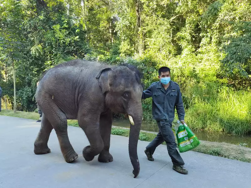 There are several elephants in the rescue center, and the staff will introduce the origin of these elephants, some are found injured and brought back for rescue, some are baby elephants born in the rescue center, and some have been captured and renovated by destroying the vehicles of surrounding residents for a long time. Finally, you can feed a baby elephant carrots and take pictures. The baby elephant is very well-behaved and will wave his hand with his nose when leaving.