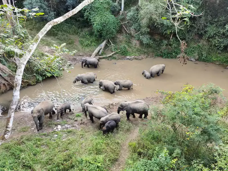 We sat on the observation deck for more than half an hour and were reluctant to leave. The staff of the park heard that there were 17 wild elephants here, and they came over one after another to see, and it is said that it is rare to see such a large herd of wild elephants. Generally, wild elephants appear more in Wild Elephant Valley from February to March, but I didn't expect to see such a grand occasion at the end of December this year. Friends who want to see wild elephants must take the plank road in the early morning or at dusk, when there are few tourists, wild elephants will walk near the plank road. Wild Elephant Valley has a WeChat public account with maps and park activity times.