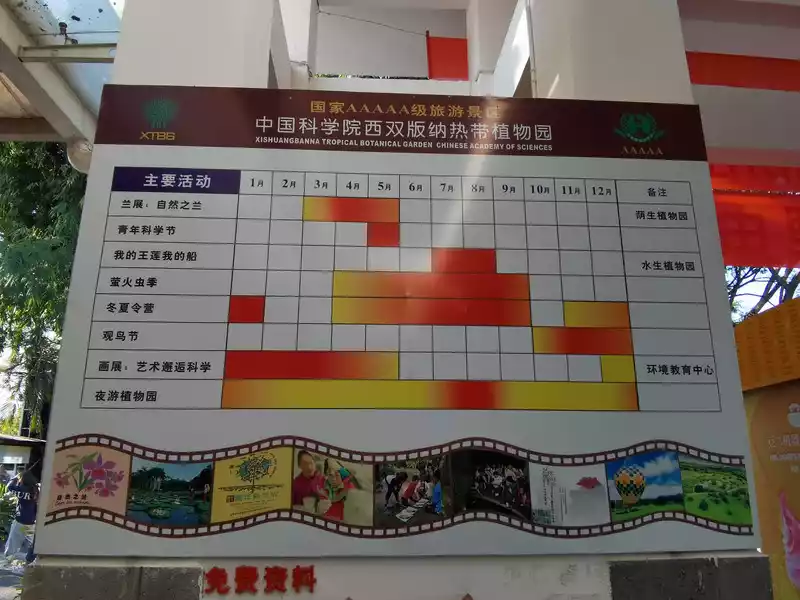 On the fourth day, we visited the Xishuangbanna Tropical Botanical Garden of the Chinese Academy of Sciences. Overall, I feel that the West District is a large park specially developed for tourists, with many attractions suitable for taking pictures, and the famous Wang Lian Scenic Area is also in the West District. If you only play the West District, you can walk or take a battery car, and the stops of the battery car are well arranged, making it more relaxed and enjoyable. In fact, only a small part of the East District has been developed, and the larger area that is not open to tourists is a tropical rainforest reserve. The East District has developed tropical rainforest and green stone forest scenic spots, which are very original and very interesting, and you can experience the feeling of shuttling through the tropical rainforest, and see the unique phenomena of the tropical rainforest such as strangulating banyan, tree waterfall, large bangen, and looking at the sky tree. Personally, I highly recommend going around the eastern district. If you play together in the West and East districts, you must take a battery car. Attached is the activity arrangement of the botanical garden, and you can participate in fireflies, king lotus, bird watching and other activities in the suitable season.