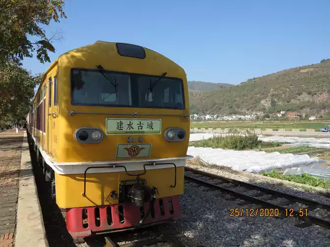 B&B was very delicious, and after breakfast, thanks to the enthusiastic waiter, the shuttle bus drove us to Lin'an Small Railway Station. At first, the boss was worried that their shuttle bus would not let him go to the train station, and I was worried that I would not be able to drive in time, thanks to the enthusiastic help of the waiter. The last time I came to Jianshui there was no small train, this time I took the baby to play in the car, this route is based on the previous "Bishi" railway, before in the Kunming Railway Museum has an understanding, now the inch gauge has been changed to meter gauge, the train is a real guy, the Kun Bureau Kun section, the train starts from Lin'an Station, ends at Tuanshan Station, and stops at Shuanglong Bridge and Xianghui Bridge in the middle.