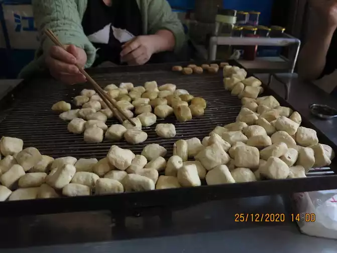 40 minutes by train to Lin'an Station (Jianshui). Along Yinghui Road, a snack bar at random, sit down and start baking tofu, recalling the roasted tofu at the street station 8 years ago, still counting corn kernels, and all kinds of tofu aroma.