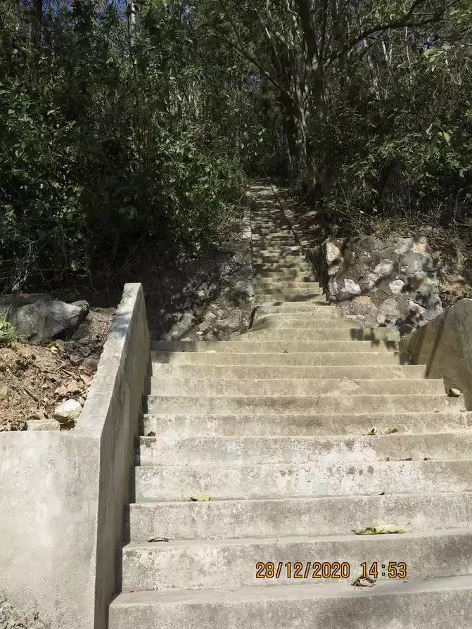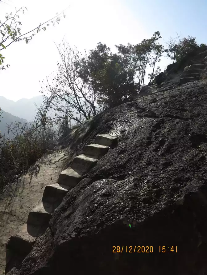 It was still early, and I decided to go to the Dawang Rock at the Malipo site to see it, this is a work of the Stone Age, Dawangyan Park is on the side of the road in the city, and parking around can only be done on the roadside. There are no gates in the park, and you can see an extremely steep staircase on the side of the road to climb up, without handrails, going straight up and down, a little afraid of heights. There will be a gentle staircase 300 meters along the road network line, which is under construction now, which is relatively muddy and the road is not very easy to walk. Anyway, the two stairs go to the end of the Dawang Rock Wall, and the Dawang Rock Cliff Painting is located on the stone wall of the Sheep's Horn Wall 500 meters east of the city.