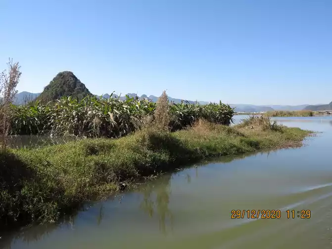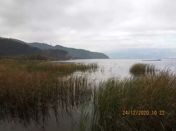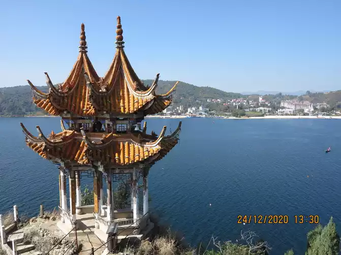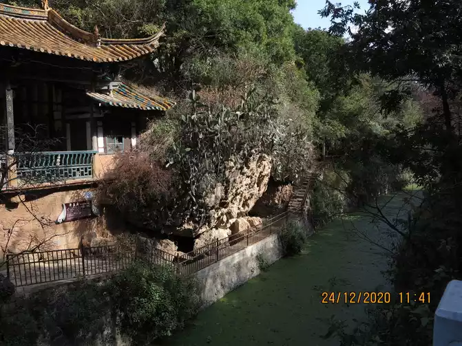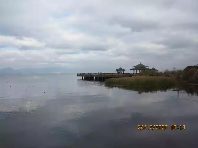 Leave Fuxian Lake Park, look at the scenery along the lake, continue to walk around the lake, and go straight to the Jieyu Stone Park on the side of the road, which is the middle of the Yudai River connected to Fuxian Lake by Xingyun Lake. It is said that the fish of the two lakes will turn back when they swim here, creating a wonder of "the two lakes intersect, and the fish do not come and go".