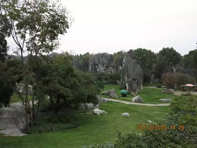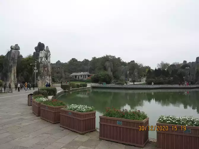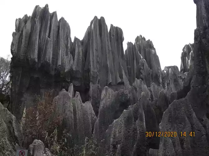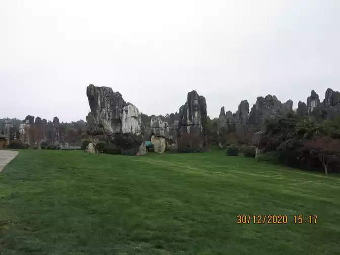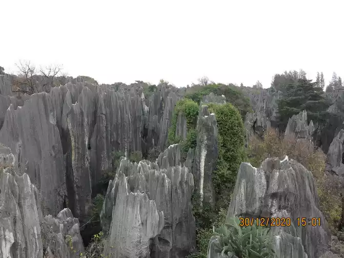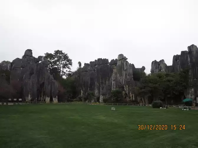 Before noon, I finished the last two sightseeing spots of the Yunnan-Vietnam Railway and took my mother to visit the stone forest. This place was not in the tour catalog, I came with my wife 8 years ago, this time my wife left the team, my mother still needs to take into account the travel content, give up the parent-child Maitreya (missed the legendary Maitreya's Huquan Tianyi Hotel), and go directly to the famous stone forest. 2 hours, the whole highway, directly to the stone forest, now the parking lot is 400 meters away from the visitor center, the visitor center to the scenic spot is 1.5 kilometers, you have to take the scenic car. There were not many people, but it was still very cold when the cold air came. I found an Asma tour guide to explain to my mother, and my mother was addicted to taking pictures. Back then, my wife and I went to the large and small stone forests, the ancient stone forests, and the Jiuxiang caves, and this time I took my mother to visit the large and small stone forests.