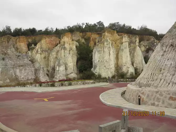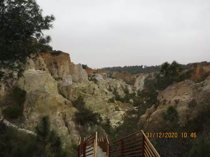 We are the first tourists in the colorful sand forest, the internal area is not large, and the natural landscape is still good. Add some humanities of the legend of the Three Kingdoms and sand sculpture art in it.The sand forest here is formed by weathering and erosion, and the layers of sand cliffs and sand pillars and sand peaks show golden, white, red and gray as the main tones, interspersed with black, cyan, green, blue and other colors, colorful and dazzling, plus different seasons, climate, sunshine and viewing angles, producing brilliant and colorful tones. Generally speaking, my mother likes the soil forest the most, and the second is the stone forest, and I just stopped by to see the scenery here.