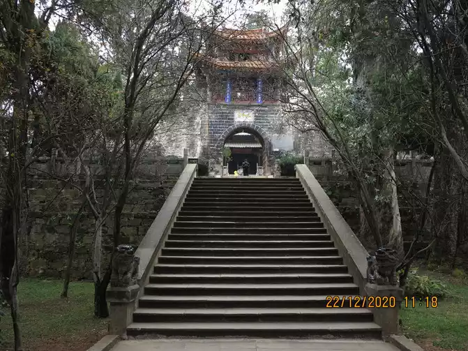 In order to go home from Changshui Airport the next day, I rushed to Qujing city in the afternoon and stayed at the Qujing Official Hotel, which is near the South City Gate. Qujing urban area has the Cuan Baozi Monument and the Duan Clan and the Thirty-Seven Alliance Monument, both of which are 61 years of national security, all on the campus of Qujing No. 1 Middle School, deducted a site in the school to build a museum, drove over to investigate, and the opening hours are every Tuesday, Thursday, Saturday, Sunday, a few hours in the morning and afternoon. It just so happened that we arrived on Thursday, and the door didn't open until three o'clock in the afternoon, and I happily went back to the hotel to clean up, my mother was not interested in this, so she simply brushed the hotel circle of friends.