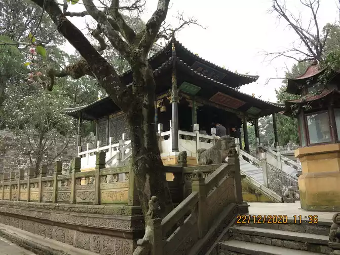 Leaving the museum, go directly to Mingfeng Mountain, 7 kilometers northeast of Kunming city, where there is the Golden Hall of Taihe Palace, you can drive directly to the door, and it is still convenient to park during non-holiday peaks. This is a famous Taoist temple in Yunnan, the environment is very quiet, but the most famous is the copper hall inside, the golden hall was first built in the Ming Dynasty, by Yunnan Governor Chen Yongbin in imitation of the Taihe Palace and the golden hall style of Tianzhu Peak in Wudang Mountain, Hubei Province, dedicated to the Arctic Zhenwu Emperor, the existing golden hall is rebuilt by Wu Sangui, the king of Qingping Xiwang, weighing 250 tons, heavier than the golden hall of Wudang Mountain.