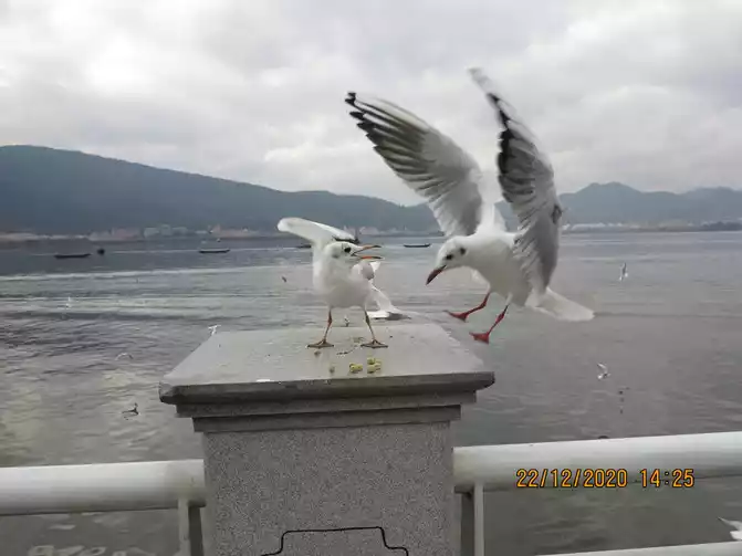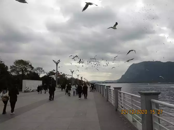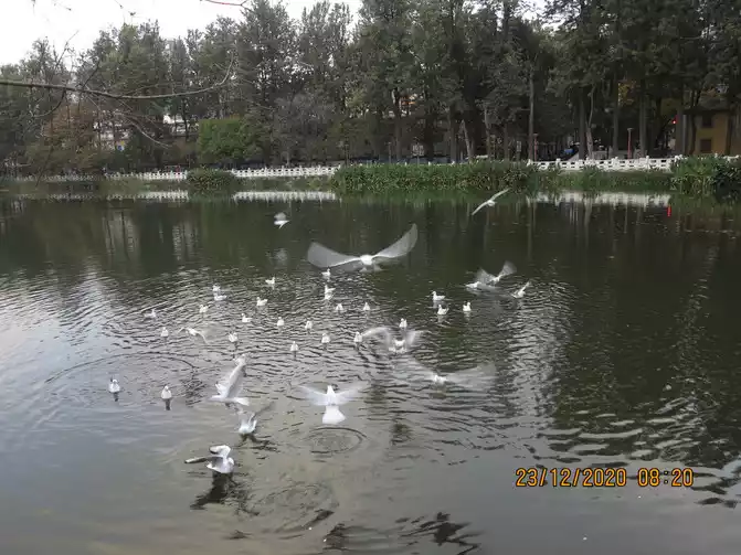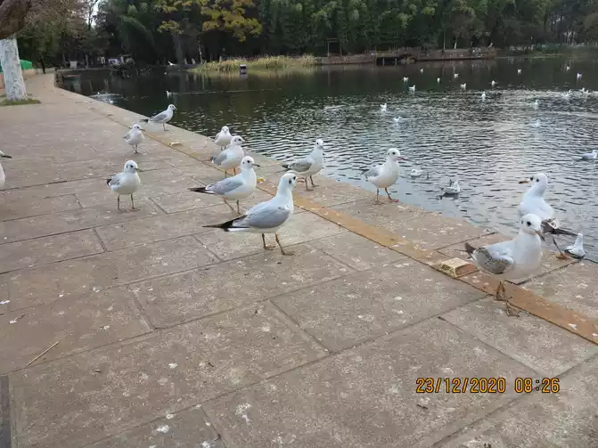 The seagulls here first came in 1985, when a group of red-billed gulls came to Kunming from distant Siberia, and Kunming citizens brought food from home to feed them; Subsequently, every winter, they never gave up on the promise, and came to Dianchi Lake and Cuihu Lake in Kunming every year. Every winter, citizens come here to feed the seagulls. After checking, the red-billed gull is not a protected animal, but Kunming uses it as a business card, and it is very good to take care of it.