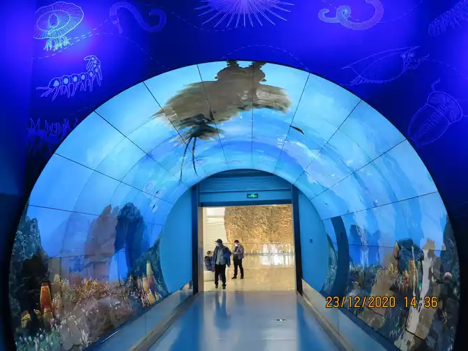 Take pictures, leave the starting point, go to the museum 8 kilometers away from here, the museum that just opened in August is said to have an investment of 600 million, this museum should be the best natural museum in China, just on the shore of Fuxian Lake, enter the exhibition hall, the huge fossil earthen wall in the hall is very shocking. The exhibition hall has a variety of high-tech, sound, light and electricity, focusing on paleontology. The free tour introduction is very eye-opening, knowing the Cambrian life explosion, knowing the Cambrian overlord "strange shrimp", the baby is a little scared but also a little curious. It is said that the most unique thing about Chengjiang fossils is that the soft body structure of paleontology 530 million years ago actually became a fossil and was completely preserved in the rock layer. These paleontological fossils not only preserve the skeleton of living organisms, but also preserve various soft tissues such as the epidermis, cilia, eyes, stomach, digestive tract, mouth, and nerves. The Chengjiang paleontological fossil group vividly reproduces the magnificent landscape of marine life 530 million years ago and the original characteristics of modern animals, and proves the authenticity of the Cambrian biological explosion, breaking the limitations of Darwin's theory of evolution, and is known as "one of the most amazing scientific discoveries of the 20th century", which is definitely worth seeing as an eye-opener.