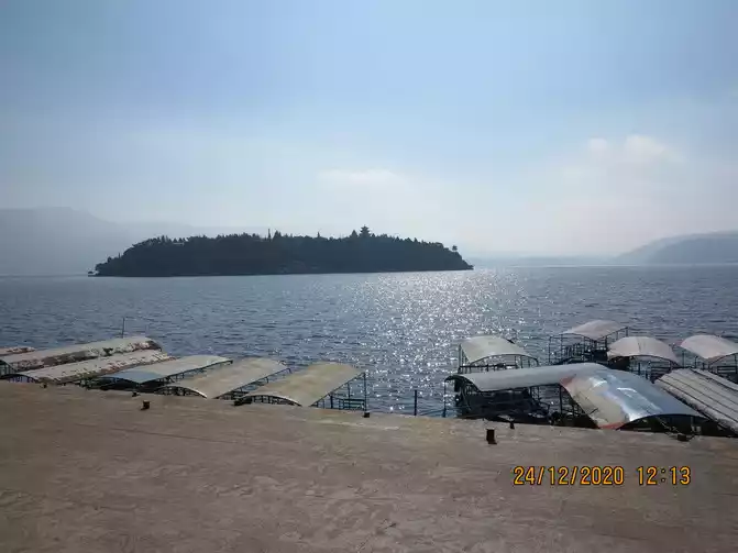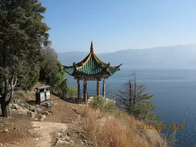 The last stop of Fuxian Lake was left to Gushan. You have to ferry to the island, you can choose to step on the boat yourself, or you can take a human-powered boat, in short, there is no internal combustion engine power. Gushan is the only island in Fuxian Lake, the island is not big, there are not many tourists, it is very comfortable to climb high to see the lake, Gushan is known as "jasper in central Yunnan", the reputation of the world's beauty, the scenery is beautiful, the victory is better than Nanzhou, it is worth visiting.