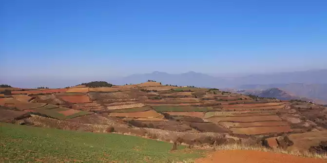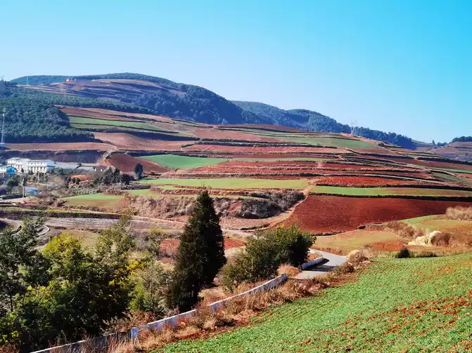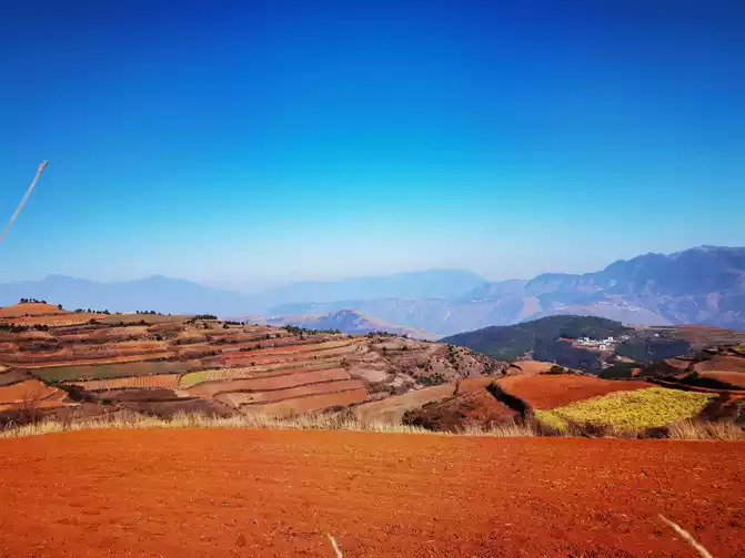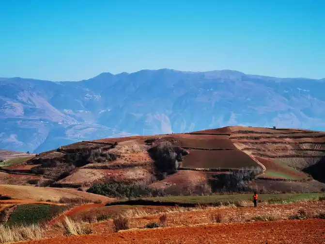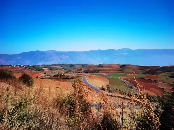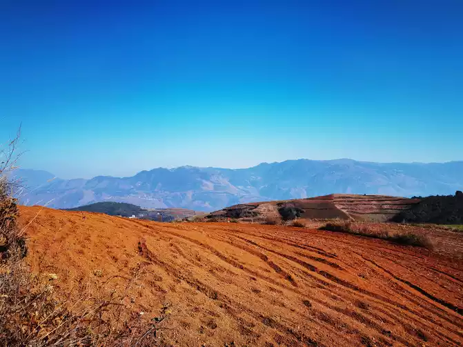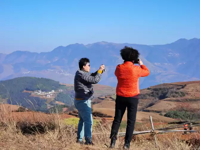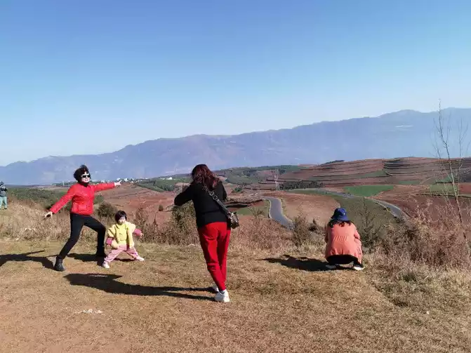 As soon as we entered Dongchuan, we were overjoyed, the temperature in Dongchuan was 16 degrees, the sun was shining, and we were glad for our decision. Get out of the car and take a frenzy.