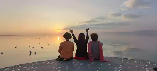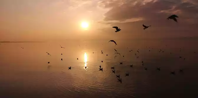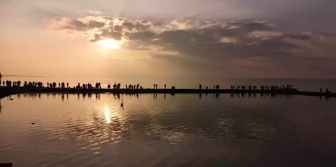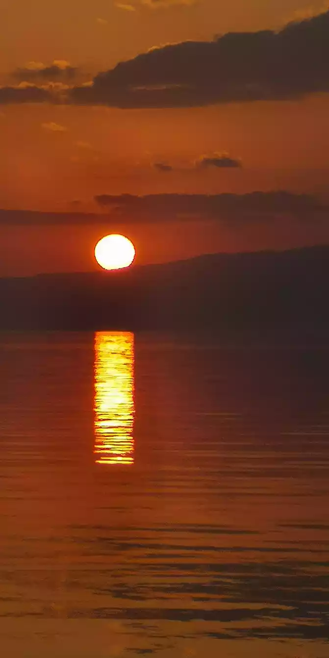 throw a stone, and the splash of water is dyed in the color of the setting sun.