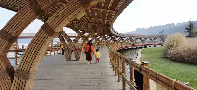 After lunch, we left the ancient city and went straight to the Longkan Wharf. It was an abandoned pier that the local government turned into a tourist attraction. When we went, it was still under construction, and the prototype had already been presented. The attraction is not open to the public, but the small door to the park leading to the pier is open, and after we enter, the first thing that unfolds in front of us is a Japanese-style dry scene, through which is a small forest, and there is a long reinforced wooden plank road built around the periphery of the grove, and then there is the endless Erhai Lake.
