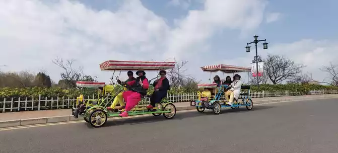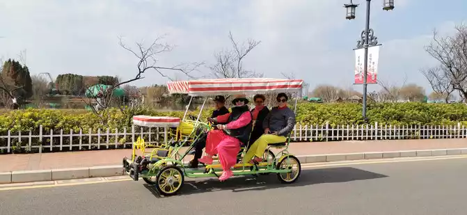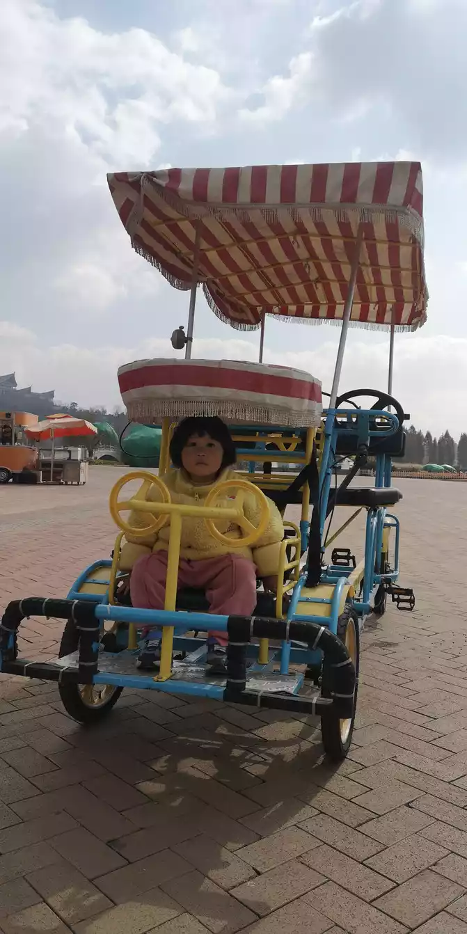 January 16th. Today's plan is to play in Kunming Wetland Park, which is a 4A-level attraction, coupled with the sunny weather, we rented multi-person bicycles in the park and took pictures while cycling. The multi-person bicycles here are very good, and there are special places for children.