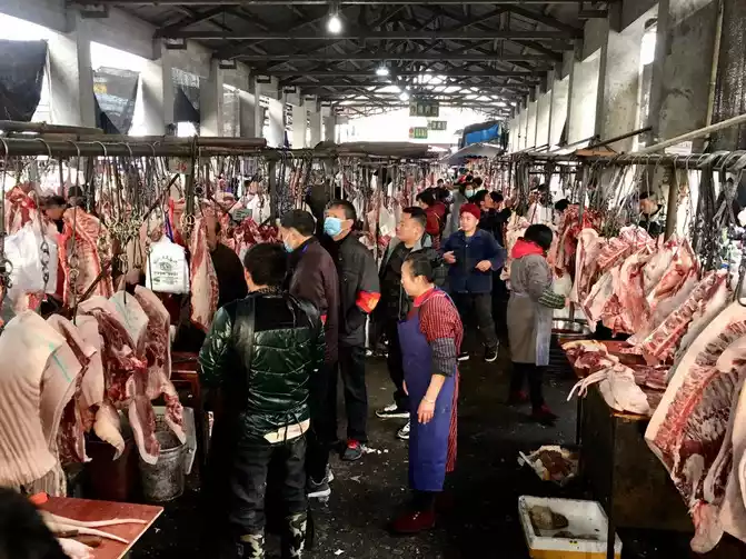 When we drove to Ya'an Hanyuan, we decided to go to Jiuxiang Town, where there was a huge grain and oil farmers' market, and everyone happily bought meat for their families to prepare for the New Year.