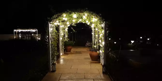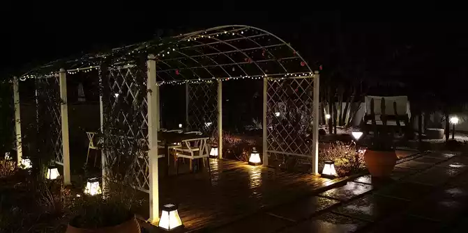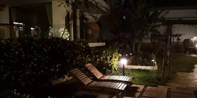 My friends were playing mahjong, and I was walking around the garden and taking pictures of the night view of the garden.