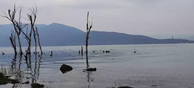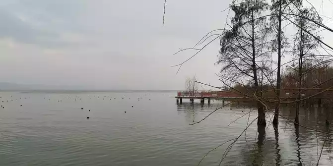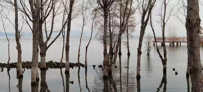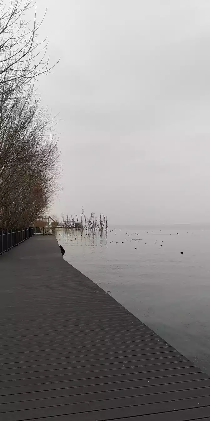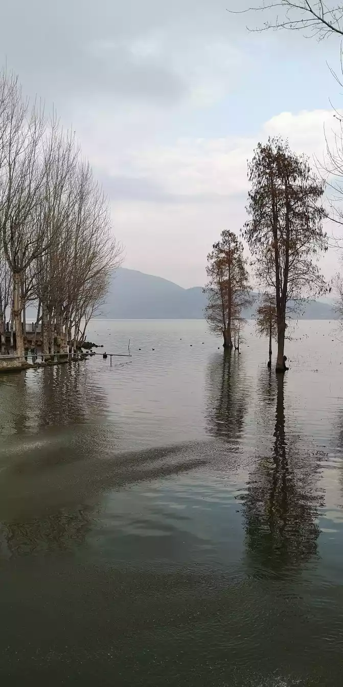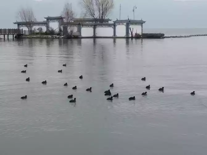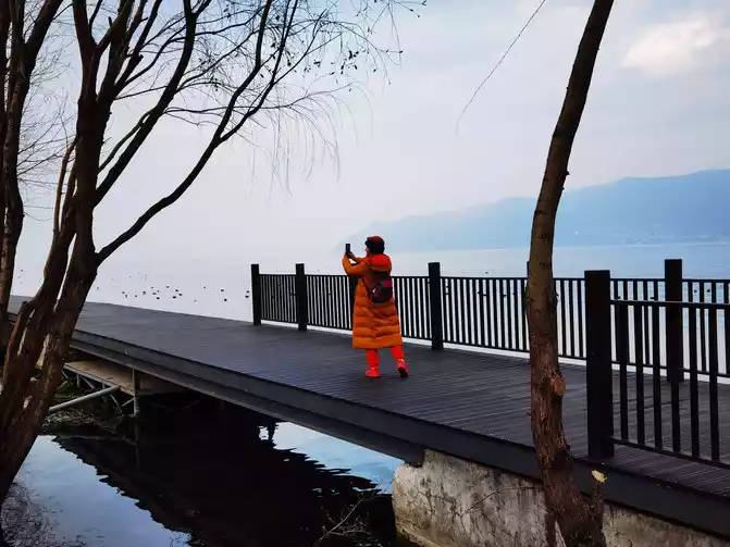 Stand on the plank road and look at the endless Erhai Lake. Due to the cold wave, the sky was gloomy, and the photos of the dragon niche pier were like ink paintings.