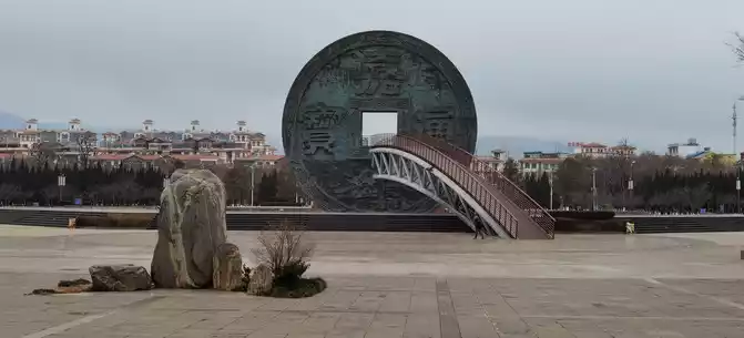 This tour did not arrange a tour of the ancient city of Aize, so after packing your luggage, go to Aize Park to photograph the world's largest copper coin when leaving Aize. I wanted to pass through Qianyan along the plank road, but unfortunately the bridge deck of the plank road was frozen, and as soon as I stepped on it, I immediately had a butt pier, so I had to take a picture below and drive towards Dongchuan.