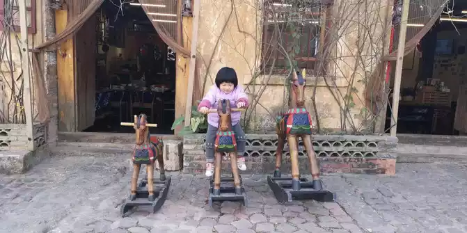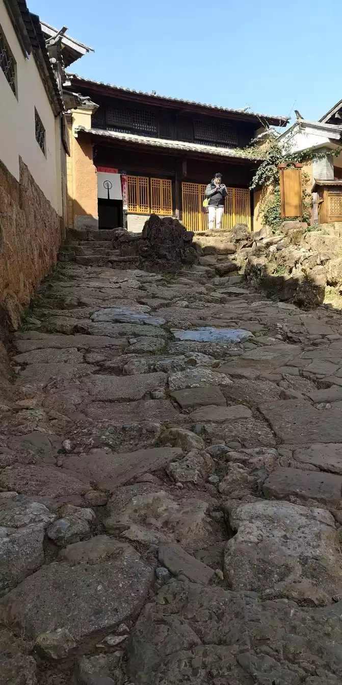 This is the only preserved remains of the ancient tea horse road in the ancient town. It is said that whenever it rains and the water rises, the horse gang will bring the sediment from the river outside the town to the town. In order to keep the town clean, the villagers brought many stones from the river outside the town to pave the road, and after a long time, the horse's hooves had stepped on the hard stones with many traces. Until now, we can still clearly see the horseshoe prints on the stone. However, compared with the "Qin Five-Foot Road" in Doushaguan, this ancient road is still very "young".