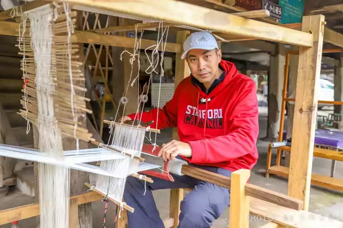 almost every village of the Dai people, you can see the tapestry of the Dai people. They can weave in every household, this kind of brocade machine is also relatively simple, there are two branches on the foot made of connecting rods, every time you step on it, you can change the position of the thread of the brocade, and you can complete it by interspersing it with the ribbon in your hand, which pays attention to the patience of the brocade weaver.