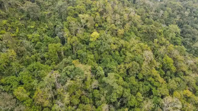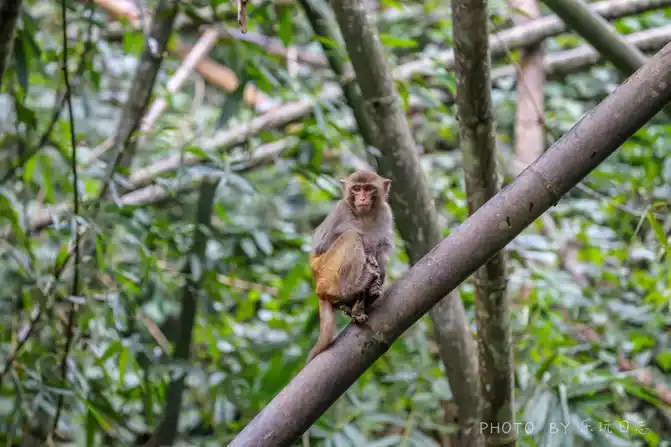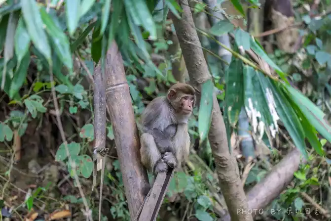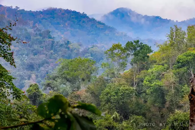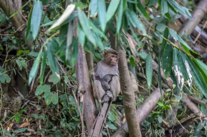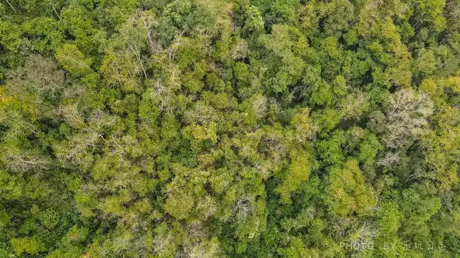Let's start with the environment around Wild Elephant Valley, where warm and humid air currents from the Indian Ocean meet cold air from the north and south, bringing abundant precipitation to the area, coupled with a humid climate, which makes the rainforest here extremely dense and rich in plant species. It also creates a particularly large production of tropical fruits here, so this is the natural habitat of this rare animal, such as macaques and wild elephants.