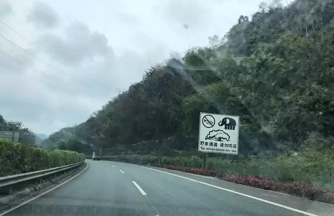 On the way to the Wild Elephant Valley, there are signs along the way that remind you that this is a wild elephant passage, please do not honk.
