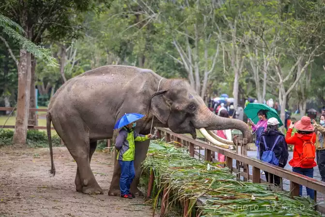 There are three ways to see wild elephants, there is an elephant classroom near the south gate of the scenic spot, and there is a free elephant show to watch. You can also participate in the elephant herding tour, that is, the mother elephant takes the baby elephant to the forest to find food, and we follow the elephant mother and son for a walk. Because it takes luck to see wild elephants on the observation boardwalk, elephant herding is a good experience project, you can interact with everyone up close, take pictures or something.