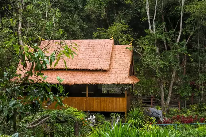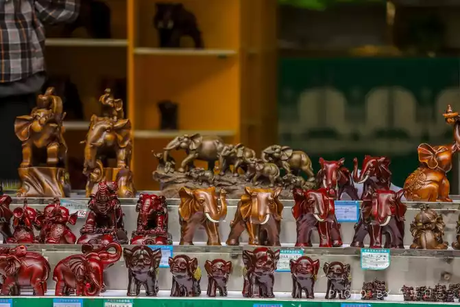 There are many such wood-carved elephant crafts in Wild Elephant Valley, which are very realistic!