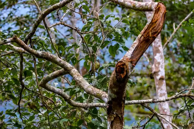 two big trees in the distance are occupied by Tengpan plants, and only the top of the tree has some branches and leaves of their own.