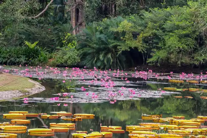 are classified according to plants, and are divided into 38 plant divisions, including aquatic botanical gardens, shade botanical gardens, palm gardens, banyan tree gardens, museums, exotic flower gardens, hundred gardens, and vine gardens. I think the most beautiful thing is the aquatic botanical garden, which has Wang Lian, which can be stood on by a child and will not sink, which is very magical.