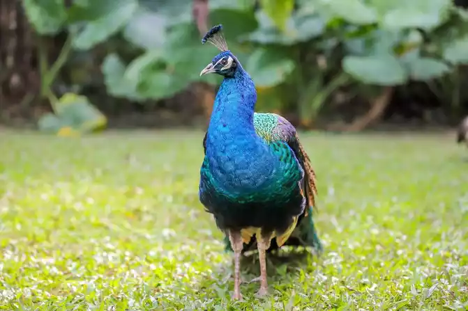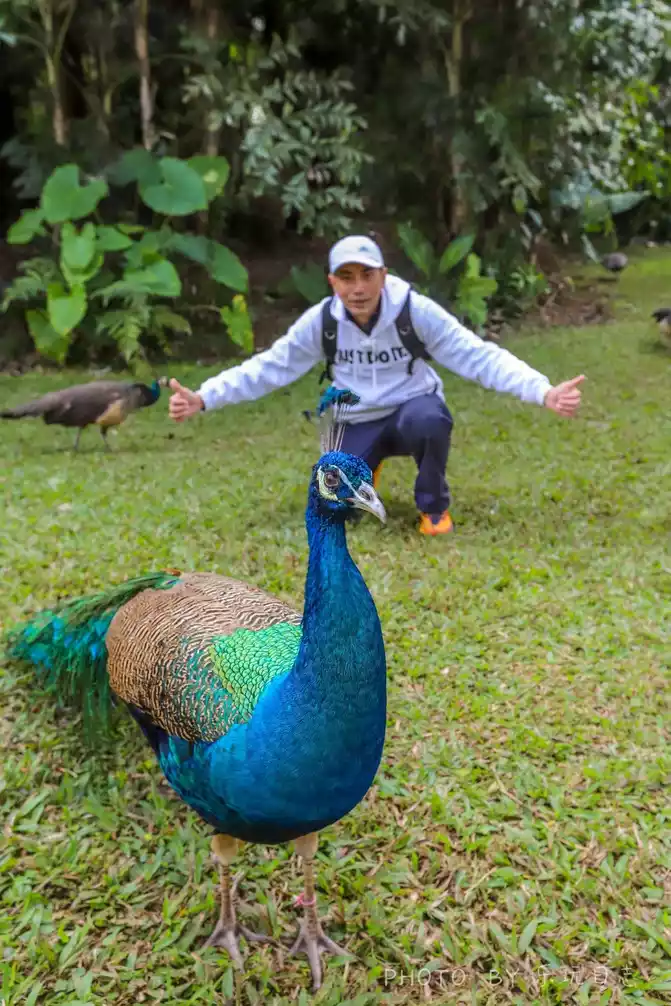 Peacocks are not afraid of people, and when they see you, they will take the initiative to run over and beg for food.